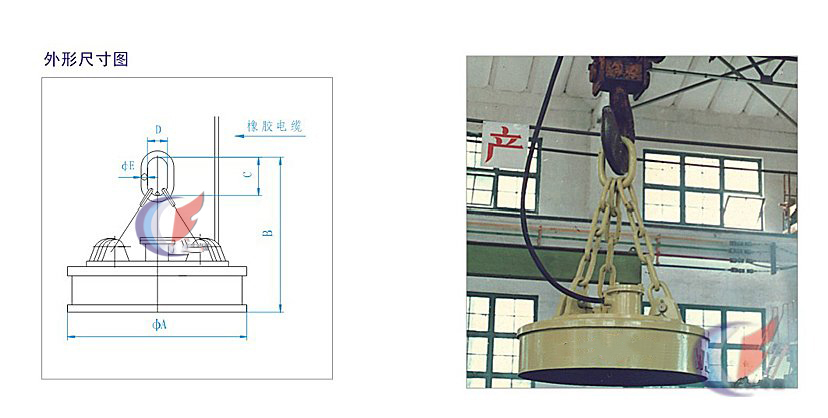 | 2、電磁鐵采用了特殊的耐熱措施,所以能吊運(yùn)600℃以下的廢鋼。 |